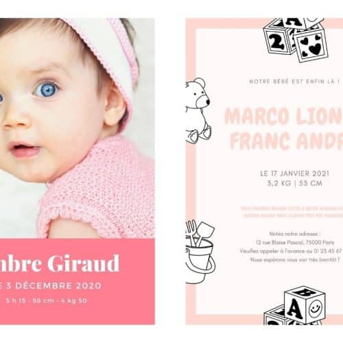 Si vous avez une sensibilité artistique et que vous souhaitez créer vous-même votre faire-part de naissance, vous pouvez aussi utiliser un logiciel de création graphique ou une plateforme de création en ligne. Il existe des solutions gratuites souvent un peu limitées. Mais la plupart d’entre-elles offrent une version premium payante permettant d’accéder à des options plus avancées.