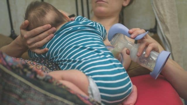 - pendant que bébé tête : bébé en train de téter sur un sein et le tire-lait « branché » sur l’autre.