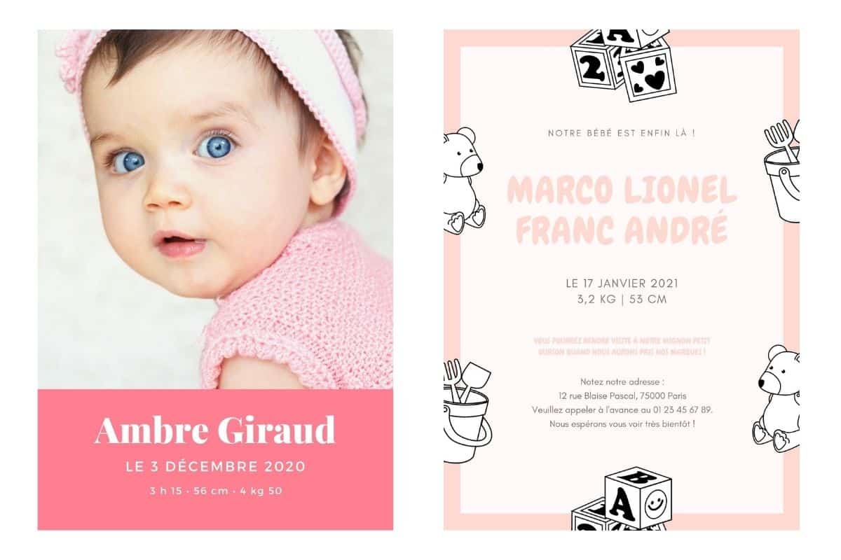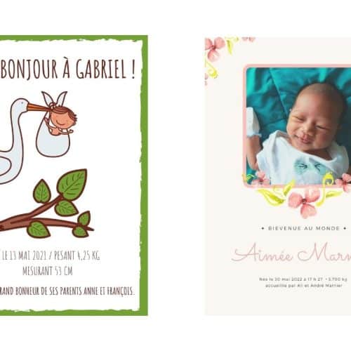 Bien sûr il y a des informations présentes sur tous les faire-parts. Parmi les éléments attendus sur cette sorte de carte d’identité du nouveau-né, vous indiquerez :
