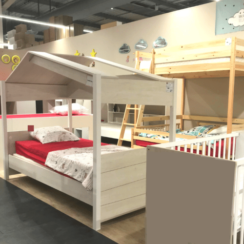 Ici les designers se lâchent, ce qui signe des meubles au design original et des collections inédites : lit roulottes, lit wagon,….